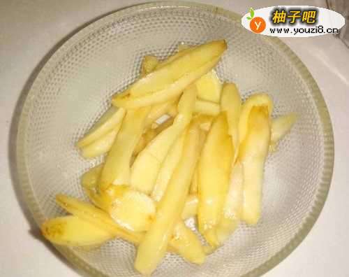2生姜去皮后切片,用少量油煸炒后姜片微微发干盛出备用。