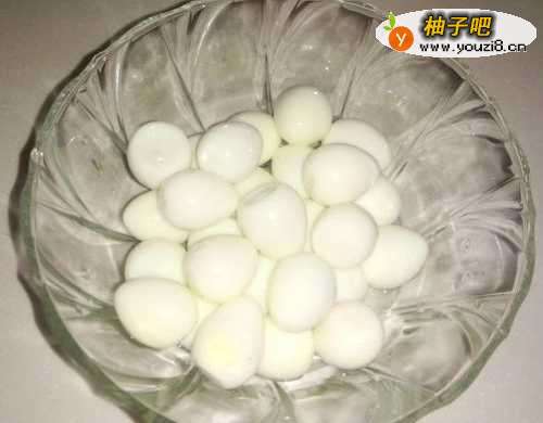 首先将鹌鹑蛋洗干净煮熟,剥壳后备用。