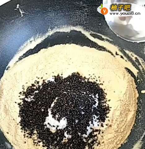 3放入1勺白糖,适量的黑芝麻和花生碎;
