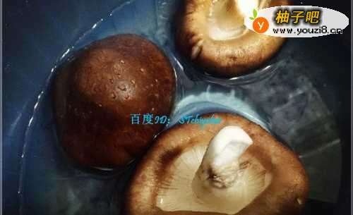 4将香菇剪去蒂头,放入水中清洗干净,特别是伞盖下方褶皱,然后将洗净的香菇切成丝条状。