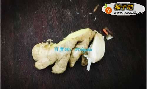 5准备少许生姜、蒜头,生姜洗净去皮切丝,蒜头拍碎去皮切末。打开电磁炉,加入适量油,放入姜丝、蒜末爆香。