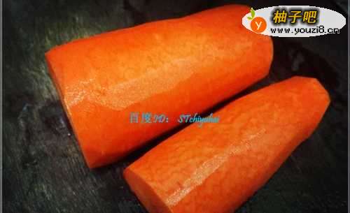 2先处理胡萝卜,将其放入清水中清洗干净,然后用皮削削去外皮。