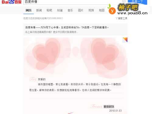 新颖的网络表白方式,向自己心爱的人表达爱意,表达爱意的方式有很多种,那么如何使用百度传情表白呢?请参看以下步骤: