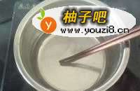 2加入白凉粉。【除了白凉粉,你还可以用琼脂、冰粉、吉利丁、果冻粉。要是这些你都买不到,好吧,我给你大招——用QQ糖!!!!