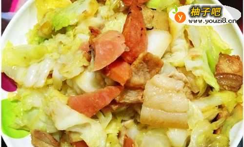 家常菜系包菜火腿炒肉