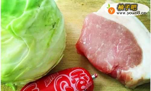 包菜的挑选,尽量选择新鲜饱满的,外层不要太绿太老,包菜层层包裹,所以不要挑选太大的,不然剥开就会有很多菜叶,太多不好炒,选择包菜内心,口感更好;火腿一般挑选孜然风味的,或者香辣味,不太简易挑选玉米甜味,搭配起来味道可能会差一些;一块带肥瘦都有的猪肉,肥肉用来熬制部分猪油,炒包菜时比较吸油,猪油会让包菜更香。