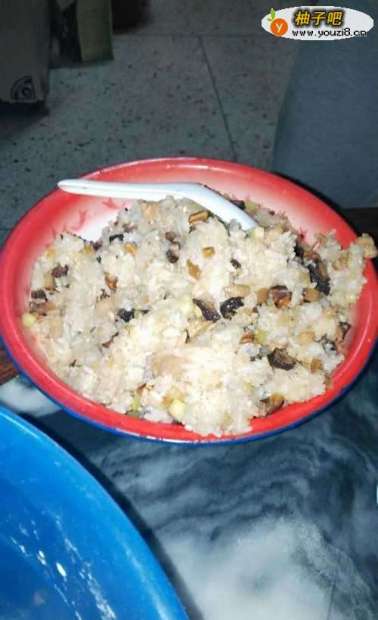 先将香菇和虾米放在水中浸泡,浸泡半个小时之后将香菇和虾米切成丁状,然后将糯米煮熟,将香菇和虾米放在锅中进行翻炒,放入适量的盐,将其放入器皿中。