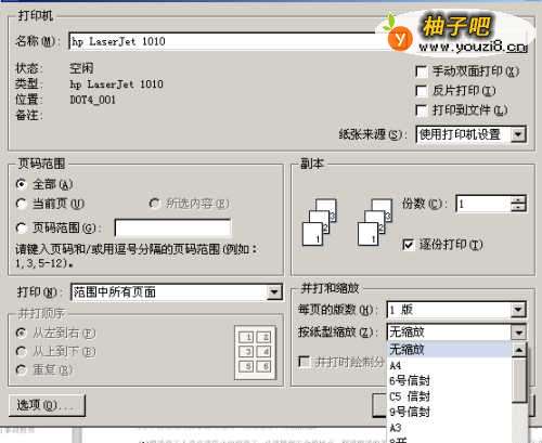 5右下角有并打和缩放按钮,下面有A3、A4及其它你需要的选项,点击确定即可打印出你想要的文档了