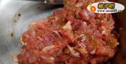 2将切碎的菜心、绞肉及调味料拌匀成饺子馅。