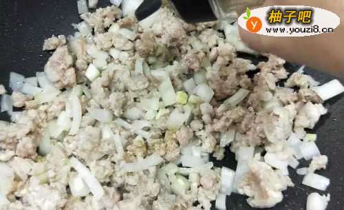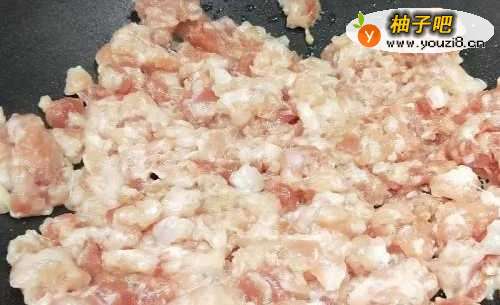 锅里不放油,将猪绞肉放入翻炒