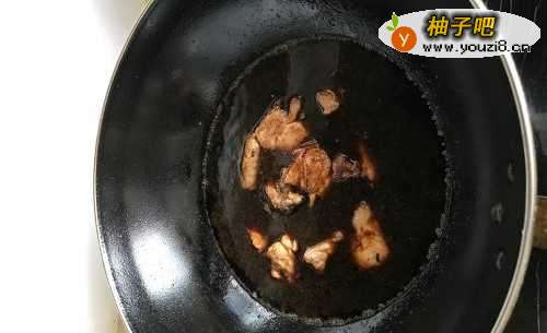 5在锅子里加上老抽,加入清水,水加到漫过排骨刚好,然后开小火,盖上锅盖,大约煮3分钟左右。