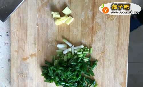 2准备好新鲜的姜、葱,将姜切成姜片,将葱切成葱花,备用,具体的量根据个人喜好选择。