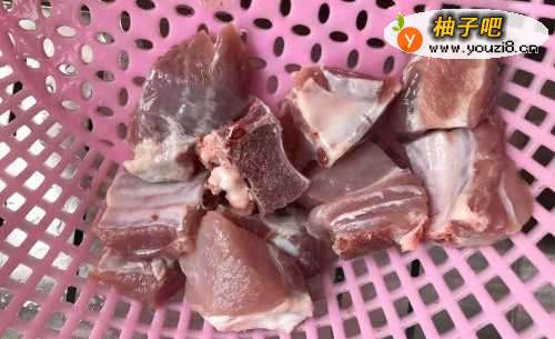 将买来的排骨切成大块,在自来水下冲洗干净,尤其注意要洗掉一些碎屑,不然会影响口感,然后晾一下。
