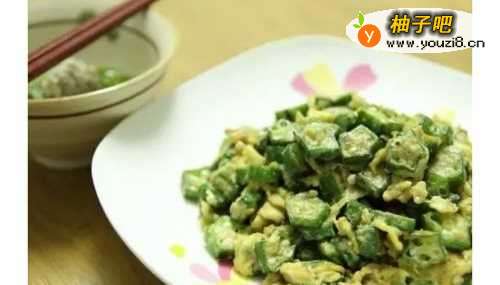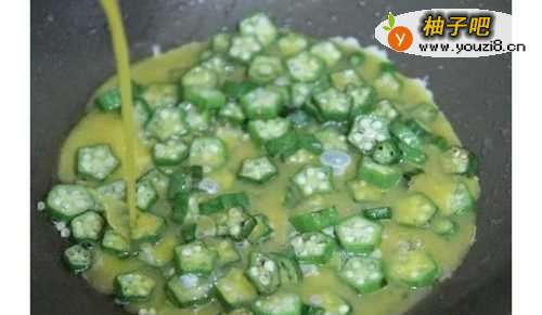 5秋葵易熟,所以煸炒一下即可,淋入蛋液。