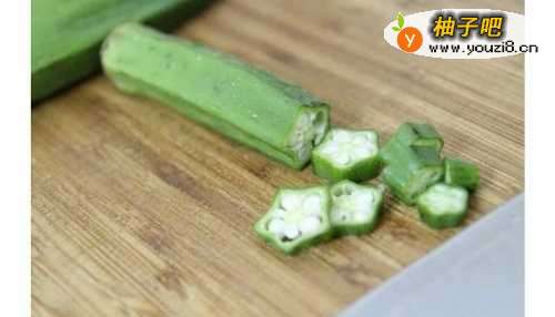 2横切面的秋葵时是星星状。秋葵有胶水状的汁液,所以切断是小心手滑。