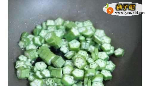 4油锅烧热,将秋葵快速煸炒一下。盐巴调味,秋葵的味道很清淡所以不加太多的调料,怕盖不住原来的味。