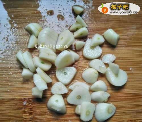 6加入切片好大蒜片。