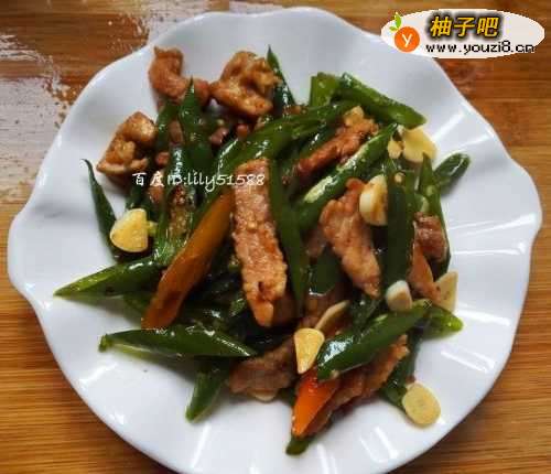 8将肉片与尖椒翻炒均匀,装盘。