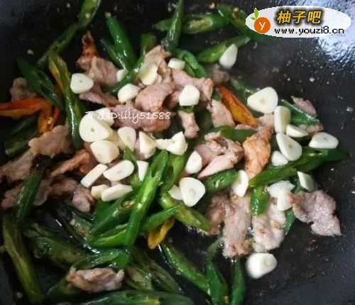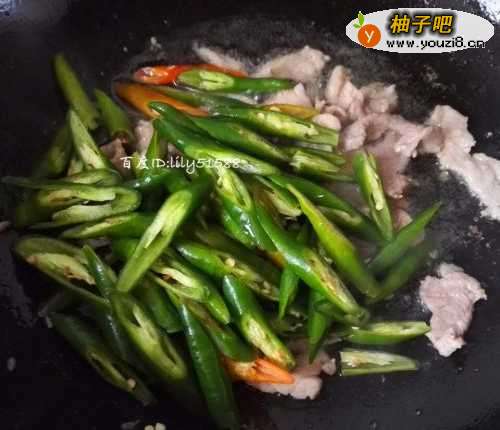 5加入切好的尖椒,炒两分钟。