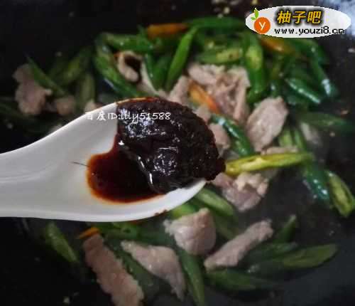 7加入半勺豆瓣酱,适量的盐,五香粉,生抽调味。