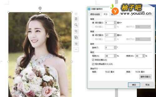 3点击格式,设置其大小尺寸,确定