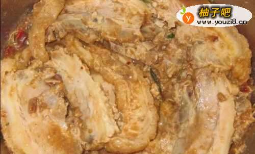 99、放入高压锅中蒸制,20分钟后放气开锅,将蒸出的肥油滤出,接着放入蒸20分钟,蒸好的肉再次将肥油滤出,然后找一菜碟,倒扣即可。