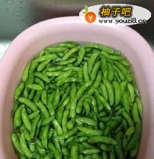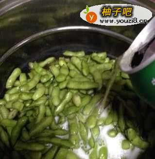 5下入毛豆,倒入啤酒与毛豆持平,下入盐调味,煮开10分钟即可
