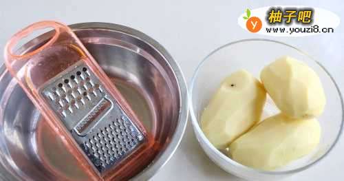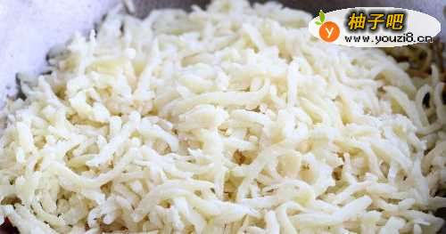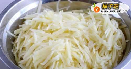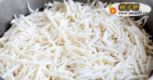 2土豆擦成丝,放入适量的面粉拌均匀;