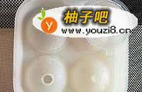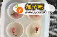 6倒入球形冰格一半的白凉粉水,樱花放入冰格