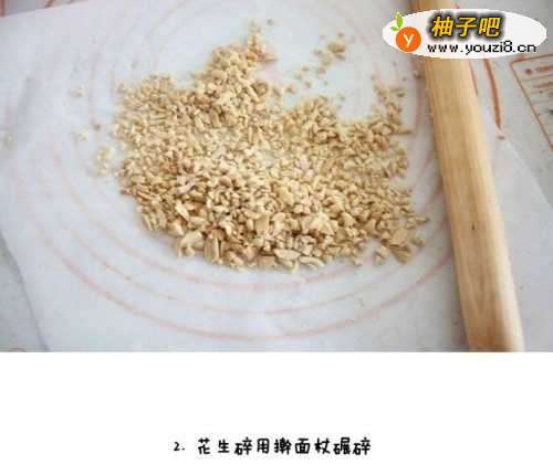 2花生碎用擀面杖碾碎
