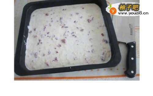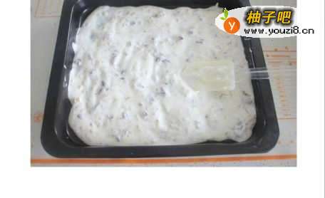 7拌匀之央柱后,倒入干净的烤盘中,稍稍用块泉肺刮刀拌边沟一下