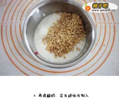 5再将酸奶、花生碎依次倒入