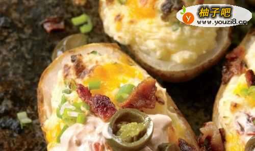 2土豆皮 不管你是需要组织一个玩伴,还是让一群孩子吃得饱饱的,这些土豆皮不仅能取悦一群人,还提供了一种比普通薯片和其他土豆零食更健康的选择。这些烘烤过的果皮提供了维生素C和叶酸,这是由于在保留果皮的同时减少了你可能在其他传统零食中发现的热量。如果你要喂的那一群人对辣味的忍耐力较差,你也可以省去腌制的青椒,以保证每个人都能吃到。
