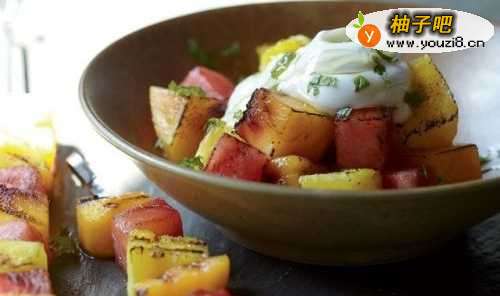 10烤水果烤肉串 当你想要控制孩子对甜食的喜好时,尝试这些烤水果串不仅是一种吃新鲜水果的有趣方式,而且还能在一天中提供大量的维生素C和蛋白质。混合了蜂蜜的希腊酸奶降低了水果酸涩的酸度,使其成为一种美味的小吃,任何人都可能忘记它是健康的。你甚至可以尝试添加不同的水果来制作你自己的。