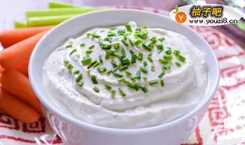 3蔬菜和自制的牧场沙拉酱 有什么比摆上一盘生蔬菜,让你的孩子把胡萝卜和芹菜蘸上健康的牧场沙拉酱更健康的呢?通过在家里调制这种最受欢迎的全能蘸酱,你可以用希腊风格的酸奶制作这种不同的酱汁,从而减少了你在商店里买到的酱汁中的脂肪。保持健康和平衡,同时做一个人人都喜欢的美味牧场沙拉酱。