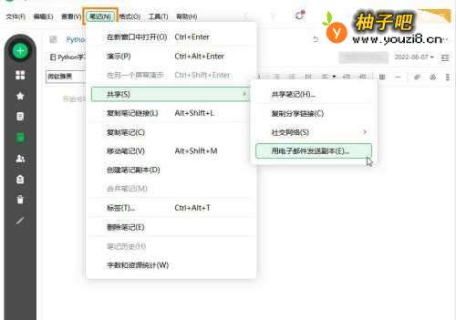 印象笔记怎么用电子邮件发送副本