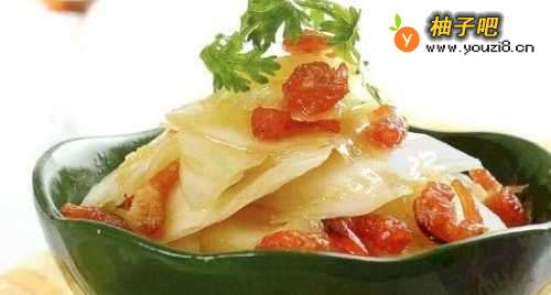 醋溜白菜:海米富含优质蛋质和维生素,与白菜配餐,营养丰富,具有清热解毒、健脑益智的功效。