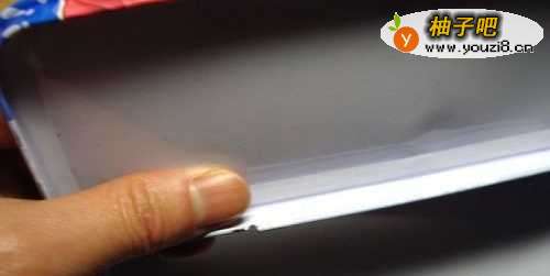 2接着,把文具盒的盖板反过来观察,查看盖子的边缘的槽是否弯了,如果弯了,可以用剪刀调整一下,如下图所示。