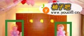 2买很多氢气球,然后直接布置一个很有效的搭配红色的气球还有黄色的气球。