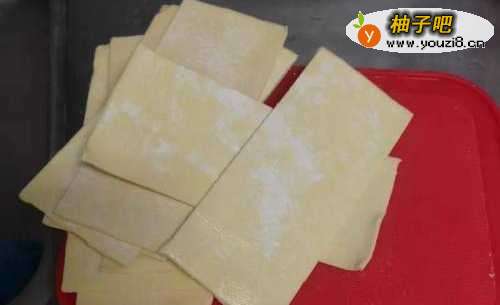 2冷冻酥皮切长条,要能包覆住整个年糕