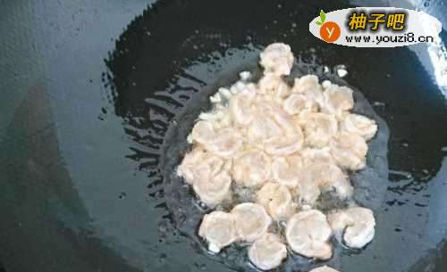 4热锅倒油,放入蒜末煸香后,把腌好的虾仁倒下去翻炒至微微变红,然后下入黄瓜丁翻炒至微软。