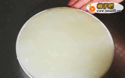 3这时,在容器上刷一层食用油,倒入煮沸的糊状物,使其冷却(温度下降后,可在冰箱中冷藏以提高口感)。