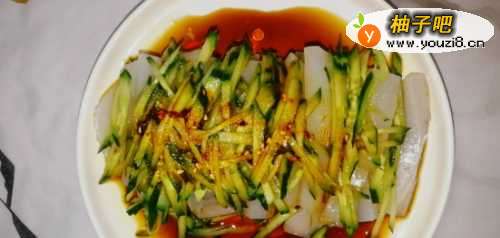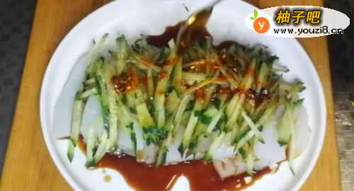 1、首先,将淀粉和水1:1糊状。2、接下来,将4等份的水倒入锅中,将面糊倒入面包中,煮沸时搅拌,煮至透明且粘稠。3、这时,在容器上刷一层食用油,倒入煮沸的糊状物,使其冷却(温度下降后,可在冰箱中冷藏以提高口感)。4、然后,等凝固后,取出切成条状,切丝黄瓜。5、最后,请根据您的口味添加调味料。