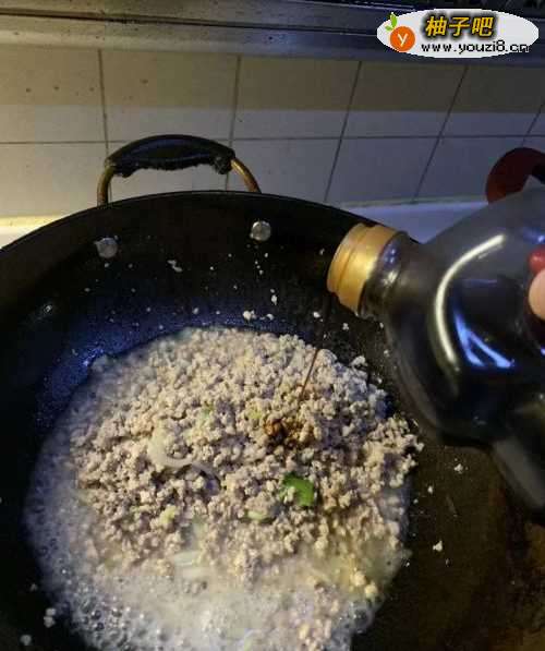 4放入肉末,加入少许生抽、盐,搅拌均匀乘出备用