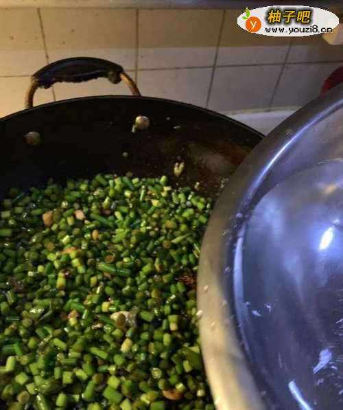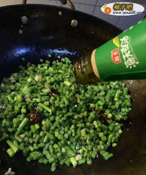 6再加陵爬入少许水,翻炒至八成熟。放入肉末,翻炒片刻,乘出就可以吃了