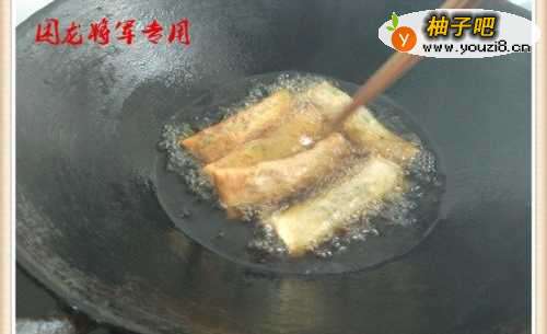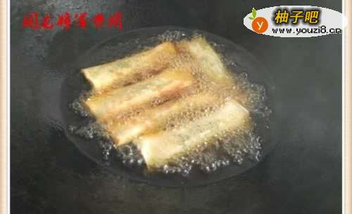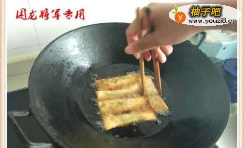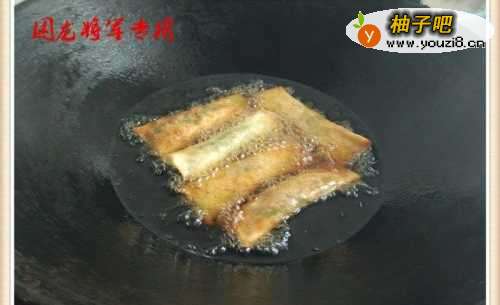 6利用锅中的温度将春卷慢慢的炸透炸好。