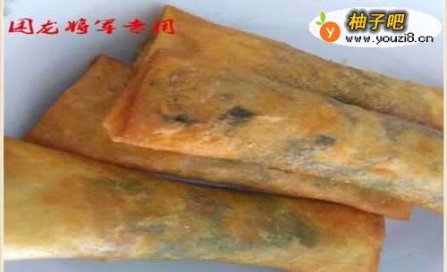5炸春卷的时候,我们将火调到最小,这时候杂质的纯碱不易糊掉。
