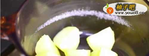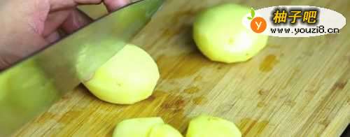2去皮,并把土豆切成1/2或1/4的块状,这样更容易煮熟。