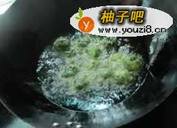 3用其他锅中加入适量食用油,待油温热后,将圆子一个一个放入锅中炸