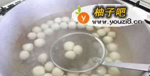 2锅中烧适量的水,待水开后,将揉好的糯米粉做成大小均匀的圆子,放入锅中煮,待圆子全部浮起来后捞出